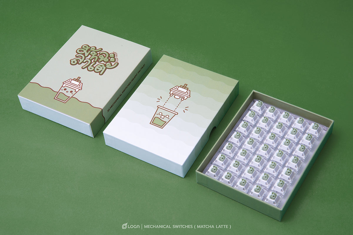 Green Milk Tea / Matcha Latte (ชาเขียว) > Tactile Silent : 2-stage quiet tactile switch, or Silent Tactile They are perfect for those who love the bouncy, tactile typing feel but don't want the noise to disturb others while they work or game.